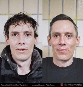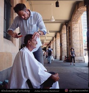 Siempre lleva sus tijeras y si ve a alguna persona pobre, sin techo, le ofrece sus servicios gratuitamente. Josh Coombes no es un peluquero al uso, él no cobra a sus clientes y su peluquería está en las calles de Londres.