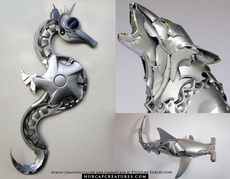 Las esculturas y juguetes de ReClain2Fame están fabricados a partir de chatarra y otros objetos desechados .